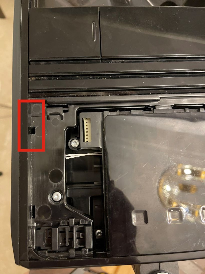 Highlight: Remove the top panel (pry the arrow)